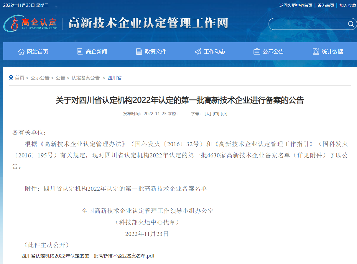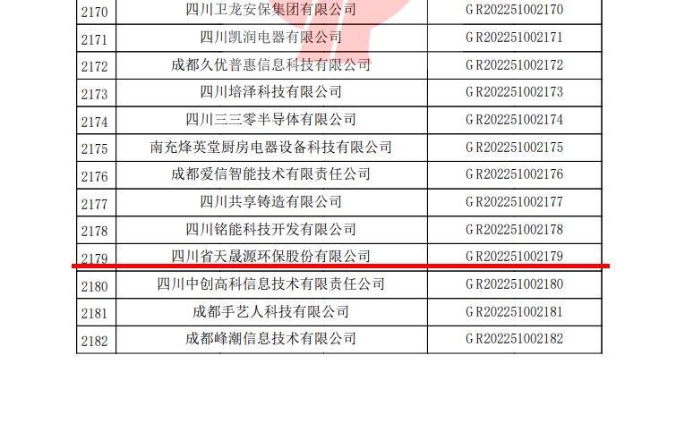近日,由全國高新技術(shù)企業(yè)認(rèn)定管理工作領(lǐng)導(dǎo)小組辦公室發(fā)布關(guān)于四川省2022年度第一批備案高新技術(shù)企業(yè)名單,四川省天晟源環(huán)保股份有限公司(下稱“天晟源環(huán)保”或“公司”)位列其中,成功取得“國家高新技術(shù)企業(yè)”認(rèn)定。