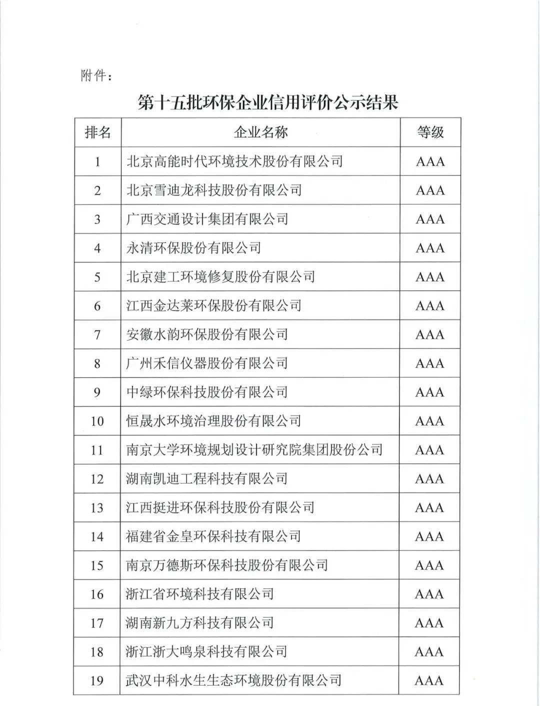 天晟源環保再獲環保企業信用評價AAA級榮譽