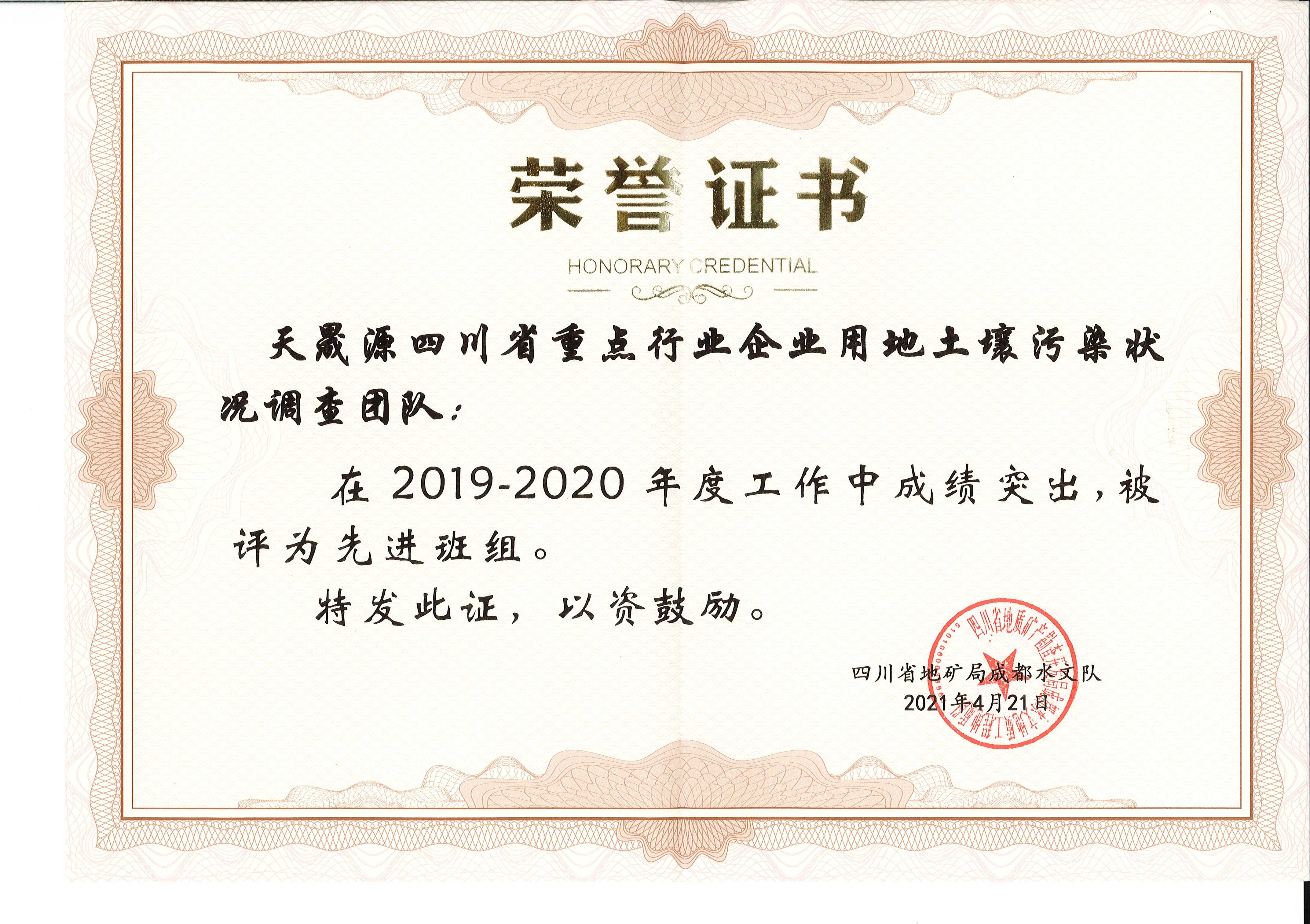 ?2021年4月25日,四川省地礦局成都水文隊印發(fā)了《關(guān)于表彰2019~2020年度先進(jìn)集體(班組)和先進(jìn)生產(chǎn)(工作)者暨最美川勘人的決定》(川地礦成水發(fā)〔2021〕16號),文件對成都水文隊2019-2020年度涌現(xiàn)出的先進(jìn)集體(班組)和個人進(jìn)行了表彰,四川省地質(zhì)工程勘察院環(huán)境工程中心(天晟源)喜獲“先進(jìn)集體”榮譽,天晟源環(huán)保四川省重點行業(yè)企業(yè)用地土壤污染狀況調(diào)查團(tuán)隊斬獲了“先進(jìn)班組”稱號!