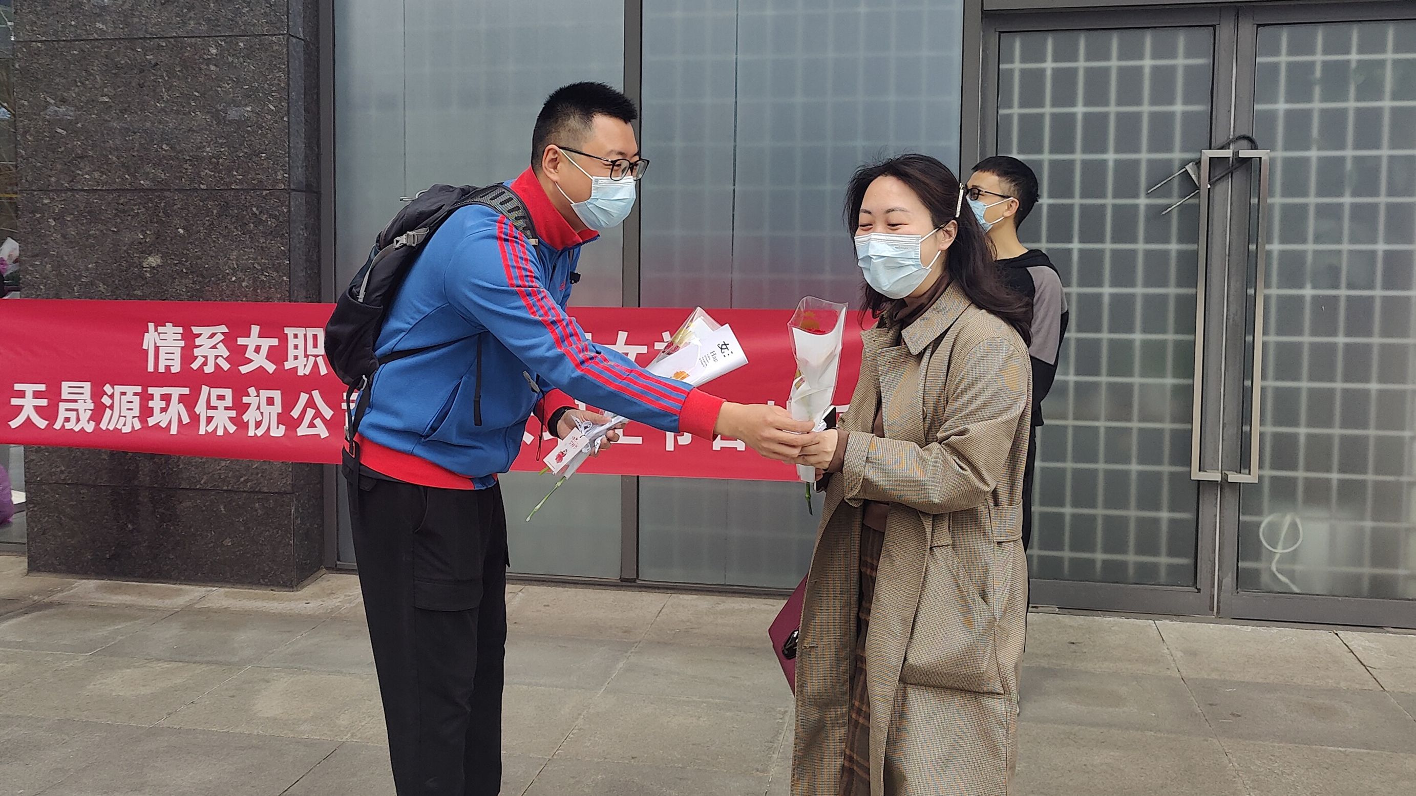 (天晟源環(huán)保工會(huì)主席姚夢(mèng)為女職工獻(xiàn)花)