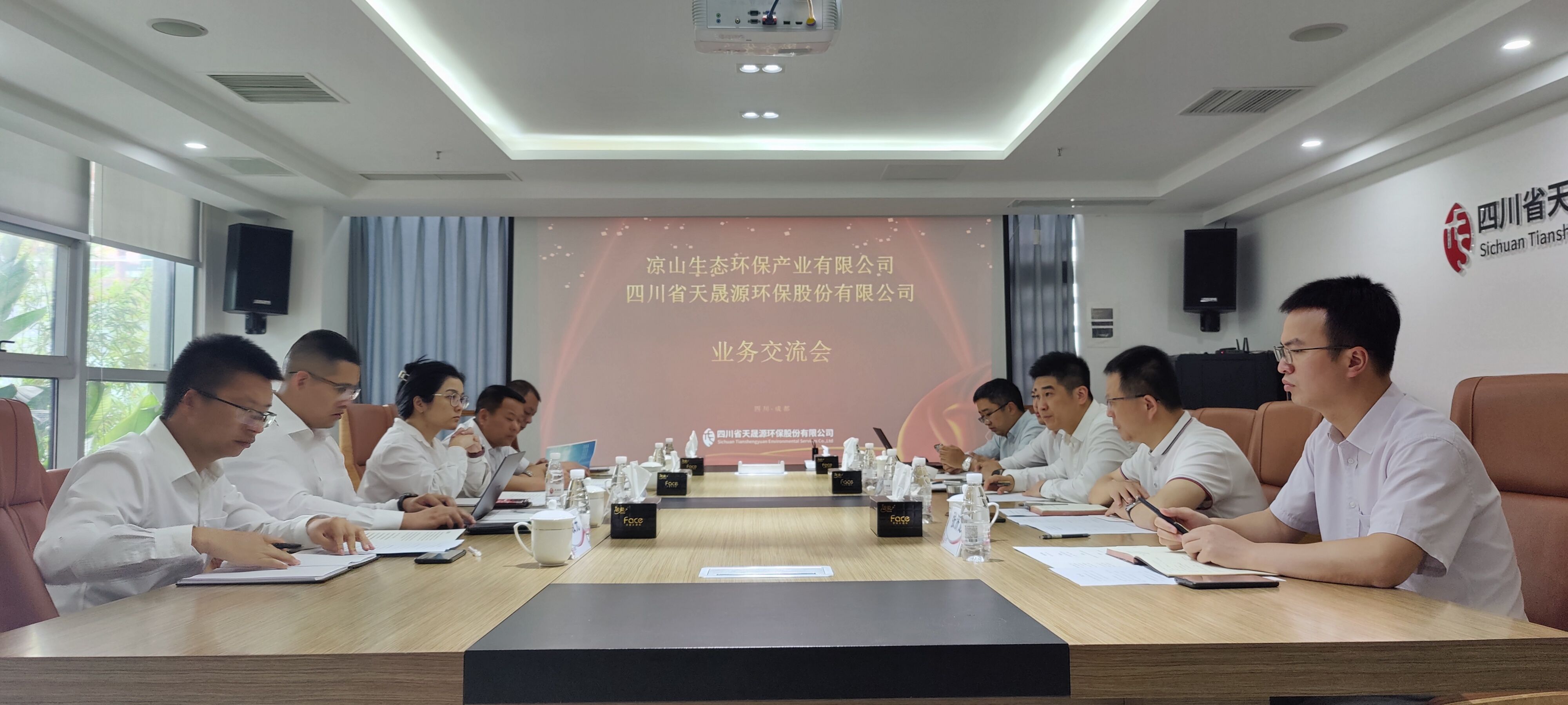 2022年5月31日,在四川省生態環保產業集團有限責任公司(簡稱“四川省生態環保集團”)黨委副書記王小元的帶領下,涼山生態環保產業有限公司(簡稱“涼山生態”)的董事兼總經理卓亞鷹、副總經理李德平、副總經理張發先來到四川省天晟源環保股份有限公司(簡稱“天晟源環保”)參觀交流,北京清新環境技術股份有限公司四川公司副總經理趙鵬、天晟源環保副董事長李大有、總經理張恒、副總工程師張濟龍等領導陪同參觀并座談交流。