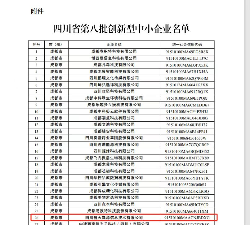 近日,經(jīng)四川省科學(xué)技術(shù)廳、四川省經(jīng)濟(jì)和信息化廳審核認(rèn)證,天晟源環(huán)保全資子公司四川省天晟源信息技術(shù)有限公司(以下簡稱“天晟源信息”)憑借扎實(shí)的核心業(yè)務(wù)、強(qiáng)勁的創(chuàng)新技術(shù)和研發(fā)能力成功榮獲四川省“科技型中小企業(yè)”“創(chuàng)新型中小企業(yè)”雙重認(rèn)定。